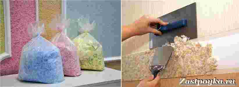 Жидкие обои, кстати, тоже относятся к категории. Продукт состоит из волокон шелка, хлопка и целлюлозы. Добавлен в смесь для жидких обоев и акрил.