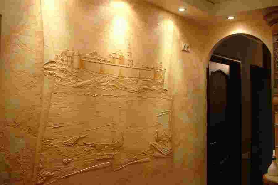- Особая штукатурка наносится в несколько слоев при оформлении стен театров, гостиниц, музеев.
