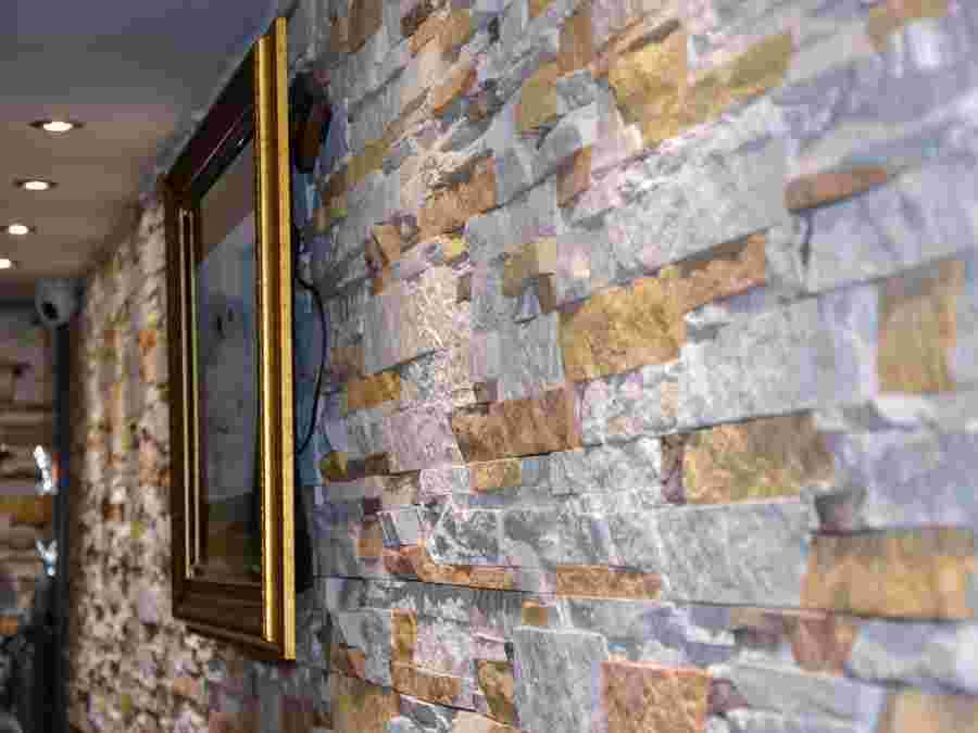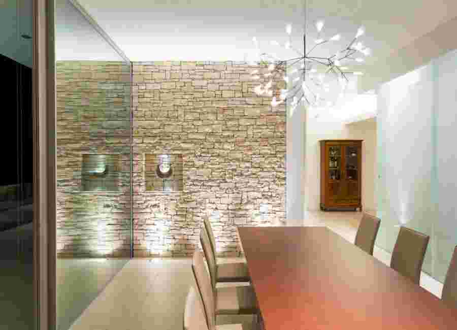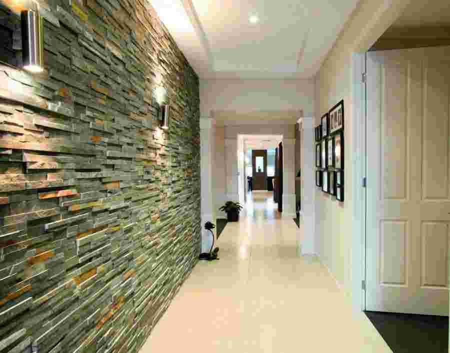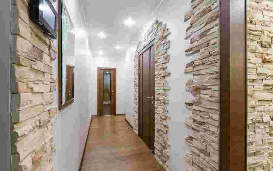 В интерьере квартиры из декоративного камня можно создать фантазийную кладку из элементов, цвет и фактура которых не существует в природе.