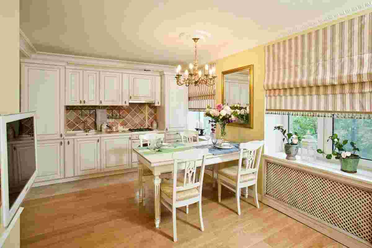 Римские шторы в кухне и столовой