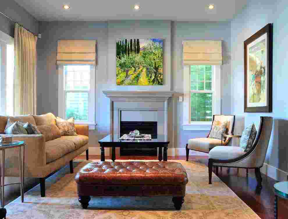 Для гостиной, в зависимости от степени освещения, традиционно выбирают шторы из органзы, парчи, гобелена или бархата. Чем меньше и темнее помещение, тем тоньше и светлее ткань. В просторной комнате римские шторы зачастую используют в комплекте с традиционными портьерами и ламбрекенами.