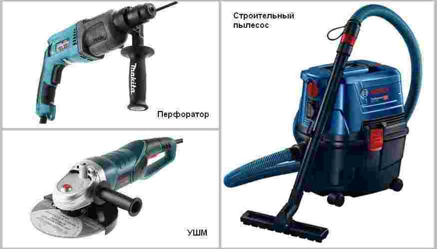 - перфоратор (для установки дюбелей, а с насадкой в виде широкого зубила годится для отбивки старой штукатурки);