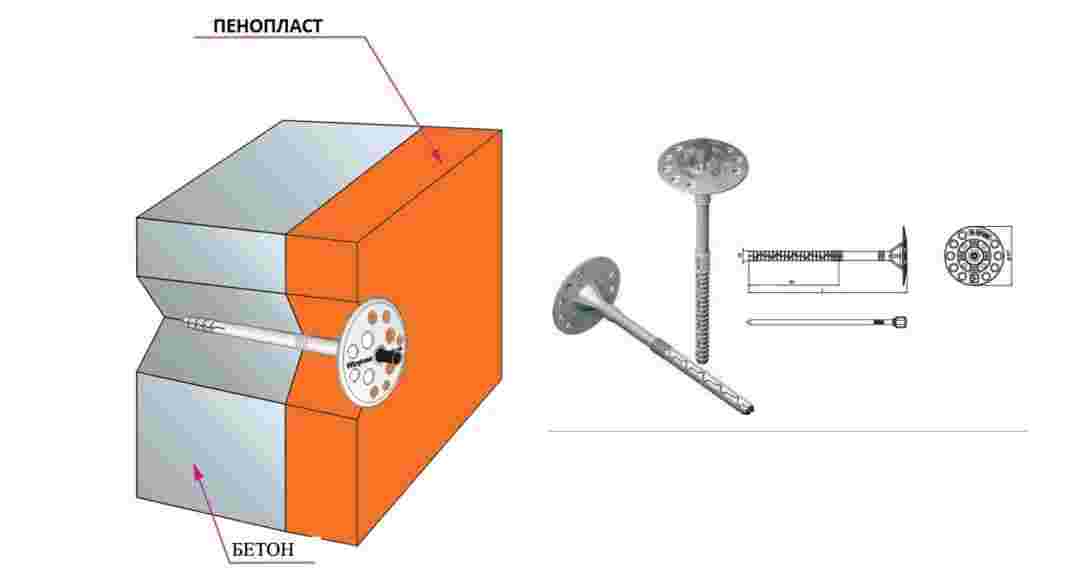Крепеж пенопласта на дюбели