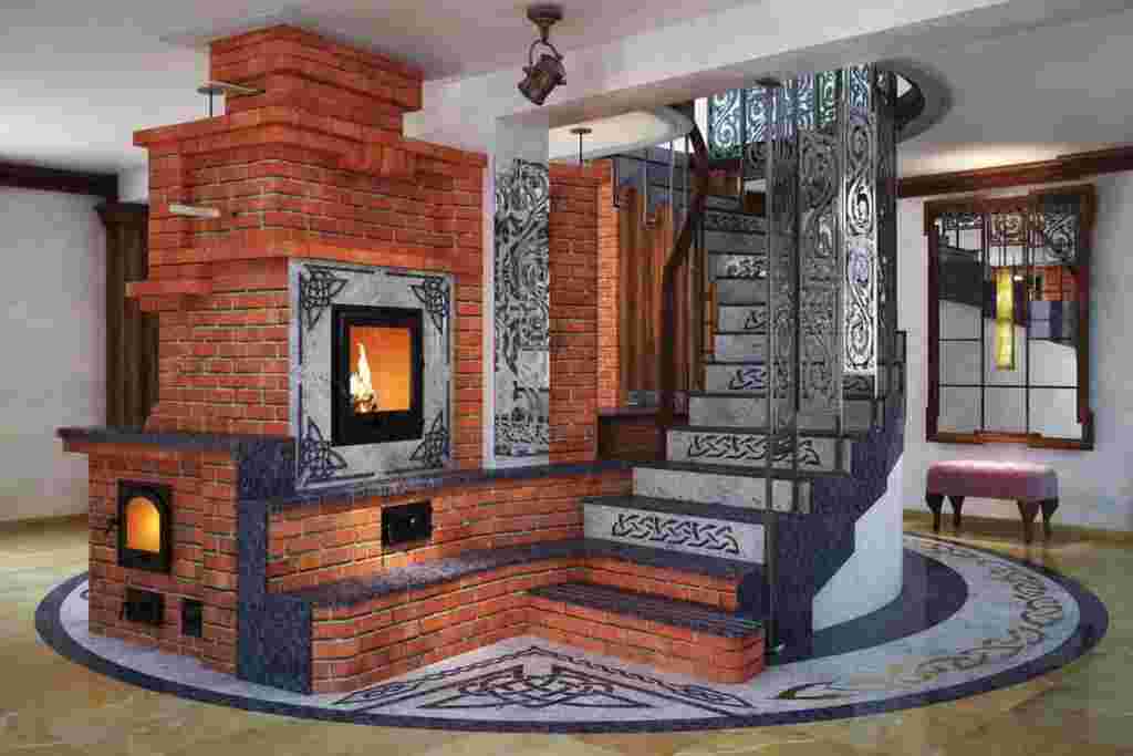 большая печь-камин для отопления всего дома