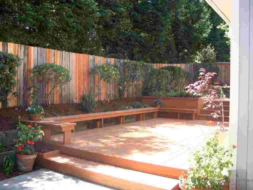 Этот вариант более основательный, чем предыдущий. Скамья с прямоугольным сиденьем и такой же спинкой отлично смотрится на фоне дома, построенного из любого материала – дерева, кирпича, камня.