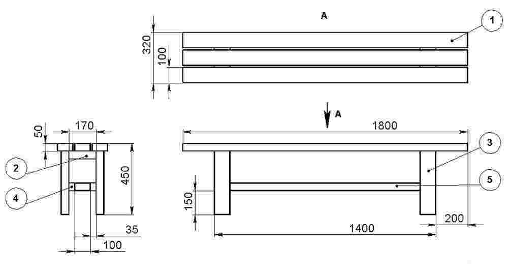 Если возникают трудности с составлением эскиза, можно воспользоваться готовым чертежом садовой скамейки.