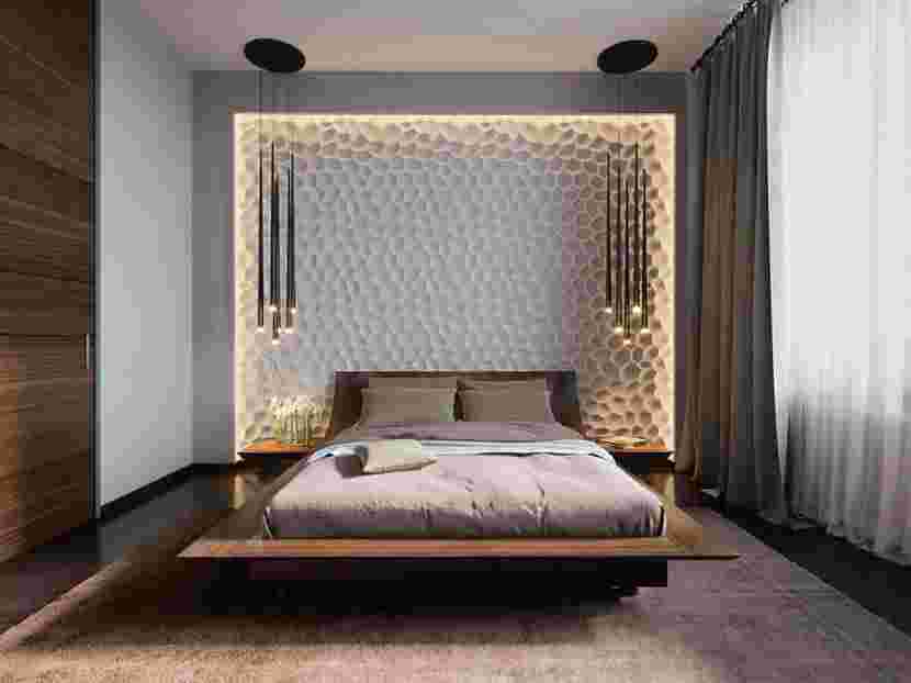 Конструкции из стекла и инновационные проекты по дизайну спален зачастую содержат прозрачные раздвигающиеся системы на базе тонкого дюралевого профиля и стекла. Внутренняя раздвигающаяся установка довольно функциональна с точки зрения использования, так как забирает мало места в пространстве, практично открывается и закрывается.