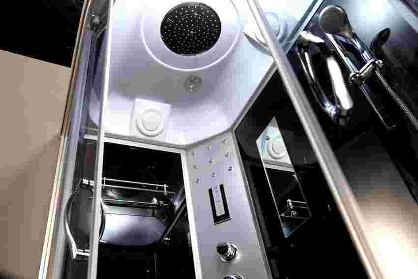 - Гидромассаж с турецкой баней. Встроенный парогенератор поддерживает температуру внутри кабины около 50 °С, а влажность при этом достигает 100%. После хорошего прогрева массаж принесёт гораздо больший эффект.