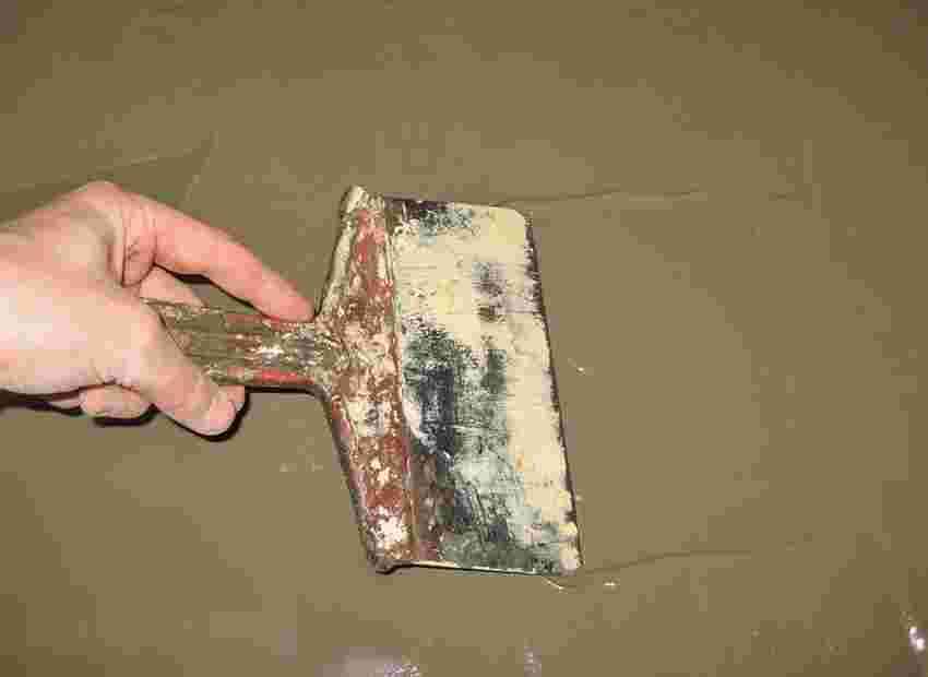 Чтобы нанести клеевой раствор для крепления плитки на полу, поверхность основания следует тщательно подготовить. Для нанесения клея используют гладкую терку, чтобы слой вышел ровным.