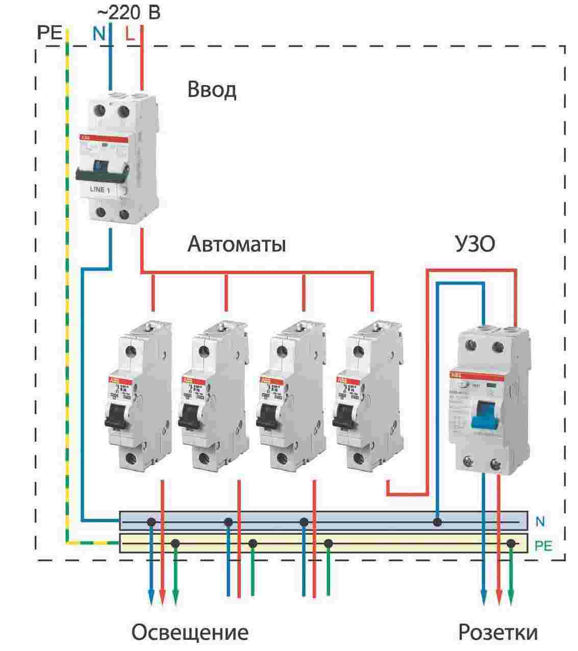 Любая схема с дифференциальным автоматическим выключателем — это отличная защита от КЗ и перегрузок для бытовых электроприборов и самой линии подачи электроэнергии, а также человека от поражения электротоком. Оптимально подобранная схема подключения способна выполнить все свои функции, конечно, если правильно выполнить монтаж дифавтомата.