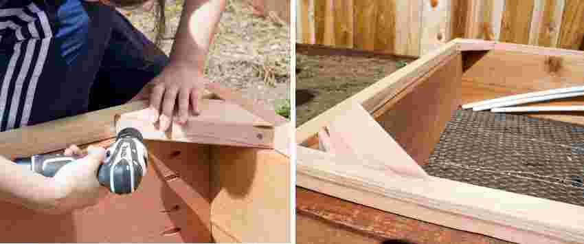 - В завершение, крепятся оцинкованные уголки и закрепляются длинными саморезами.
