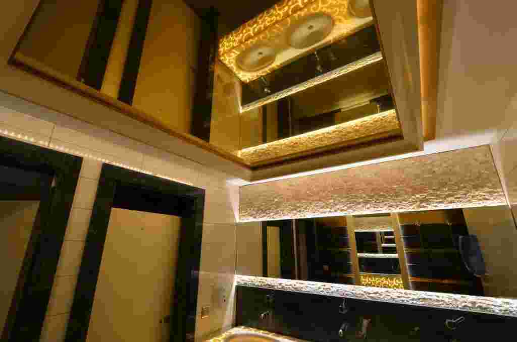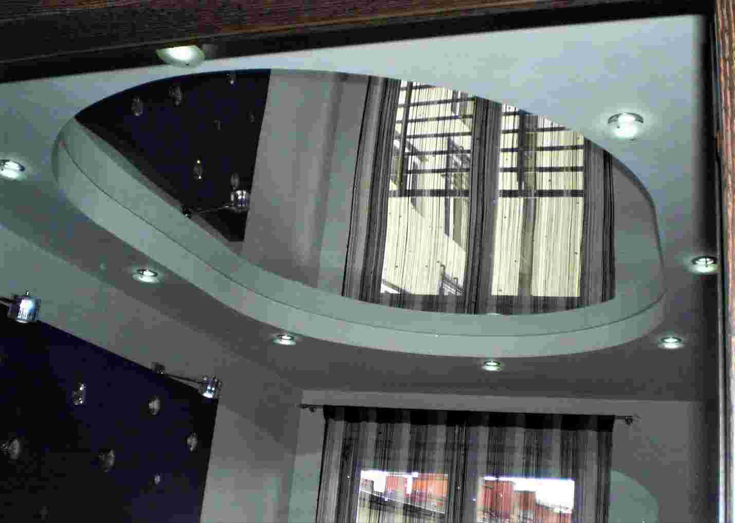 - На зеркальных подвесных потолках можно сделать многоуровневое освещение, к тому же зеркало отражает свет, делая освещение ярче.