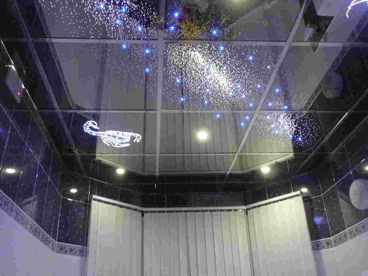 Подвесной зеркальный потолок смотрится очень привлекательно