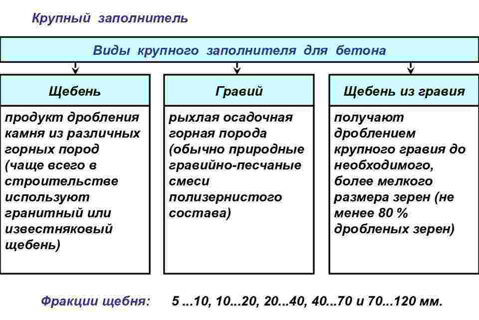 Используемый наполнитель влияет на то, к какому классу относится сырье. Виды бетона: