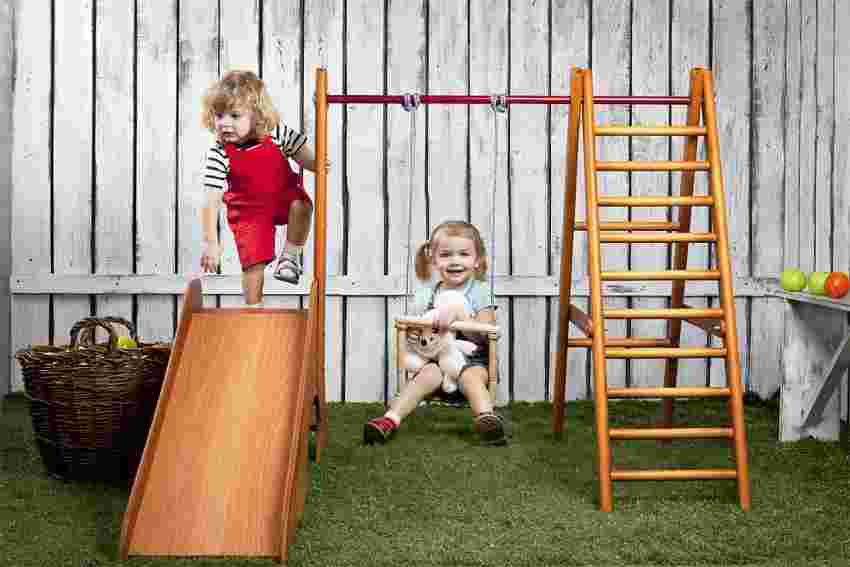 Покупая шведскую стенку для маленьких детей, стоит позаботиться о наличии подходящих комплектующих для определенного возраста