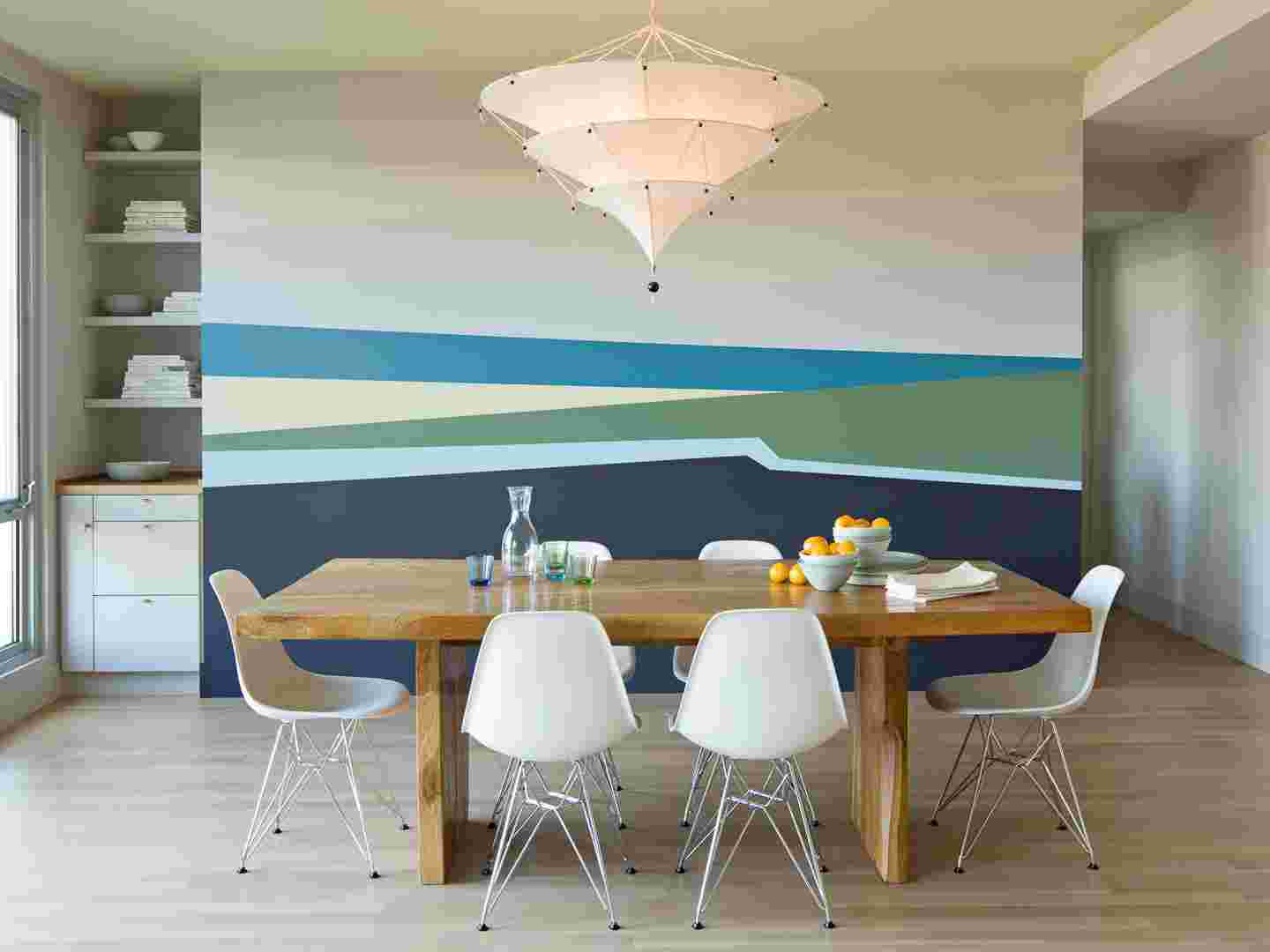 - Соединить можно покраску стен с обоями, последние стоит выбирать моющиеся, чтобы проще было убрать пятна жира
