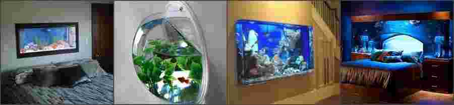 Если встроить водоем в стену, это создаст ощущение «живой картины» в комнате, послужит отличным декором. Существуют две разновидности таких емкостей:
