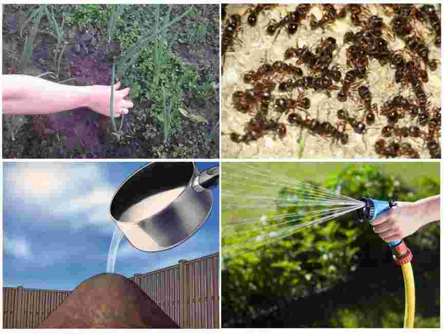 - заливание муравейников какой-нибудь активной или ядовитой жидкостью: кипятком, керосином или настоем ботвы паслёновых
