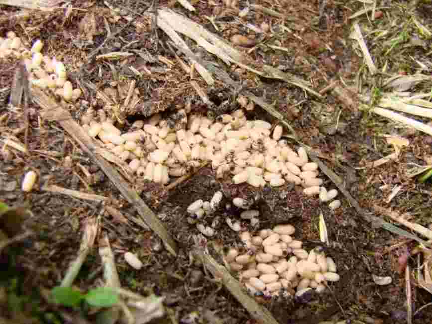 Муравейники в саду преимущественно располагаются ниже уровня почвы. Или имеют небольшую надземную часть. Все муравейники имеют множество ходов, камер, складов в которых и протекает жизнь семьи. В самых комфортных зонах (тепло и влажно) размещаются «детские»: в одних – яйца, в других – личинки, в третьих – куколки. Очевидным плюсом является неподвижность (яйца и куколки) и малоподвижность (личинки) муравьиных детей. Мечта воспитателей детских садов.