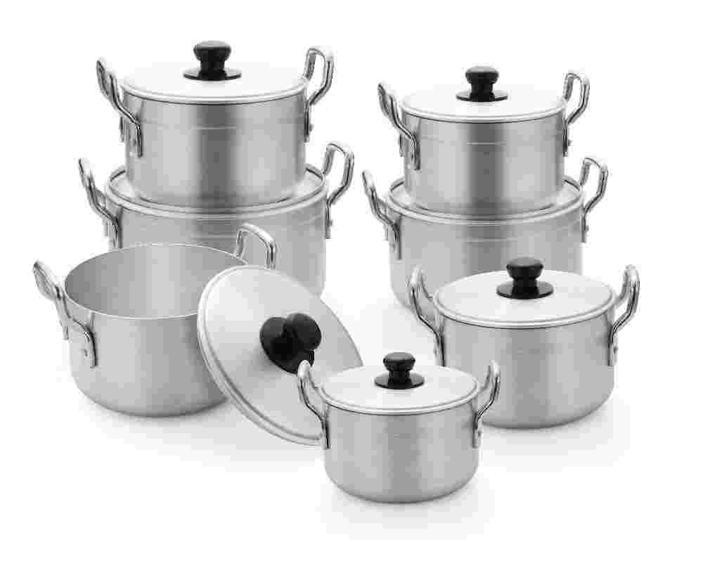 Изделия обладают высокой теплопроводностью, быстро нагреваются. В таких емкостях готовят на пару, варят, жарят и тушат. Различают следующие разновидности алюминиевых изделий: