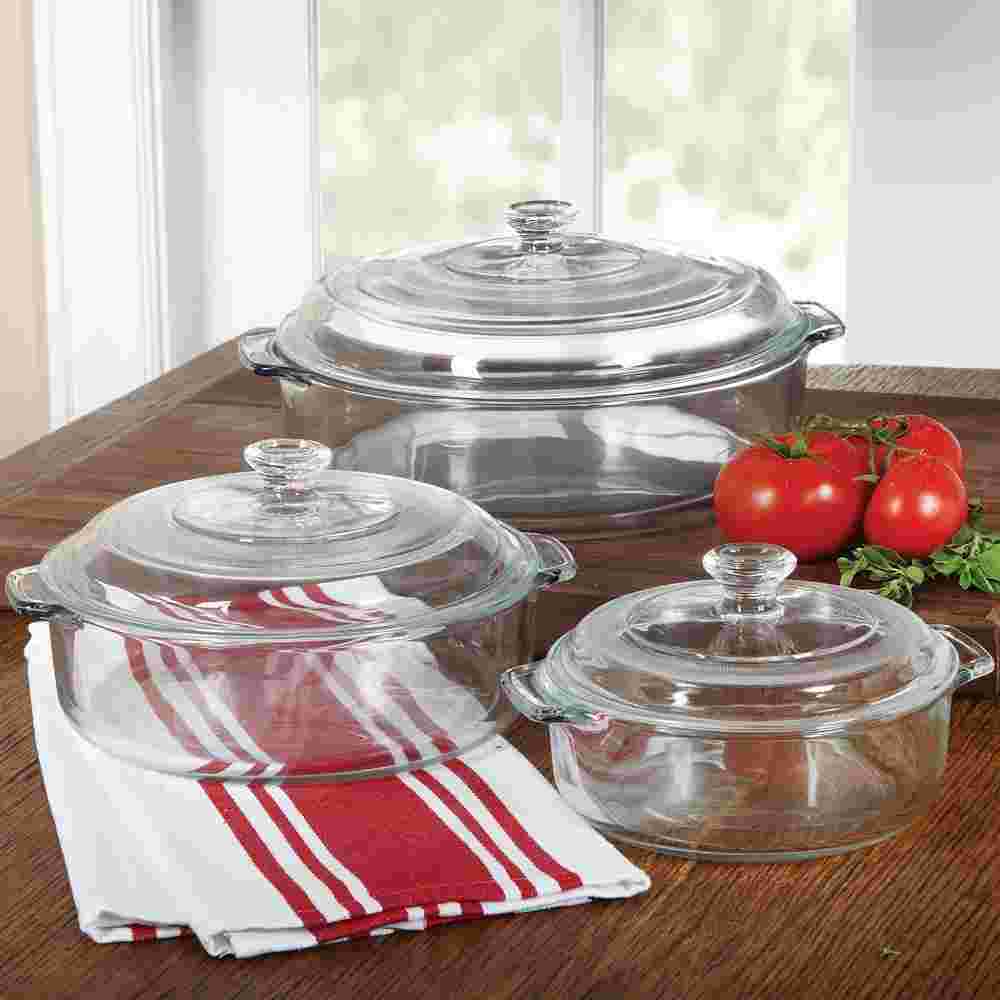Что касается изделий из огнестойкого стекла, то они очень инертны в химическом отношении и позволяют визуально контролировать процесс готовки. Мыть стеклянные поверхности легко, а еще на них не задерживается накипь.