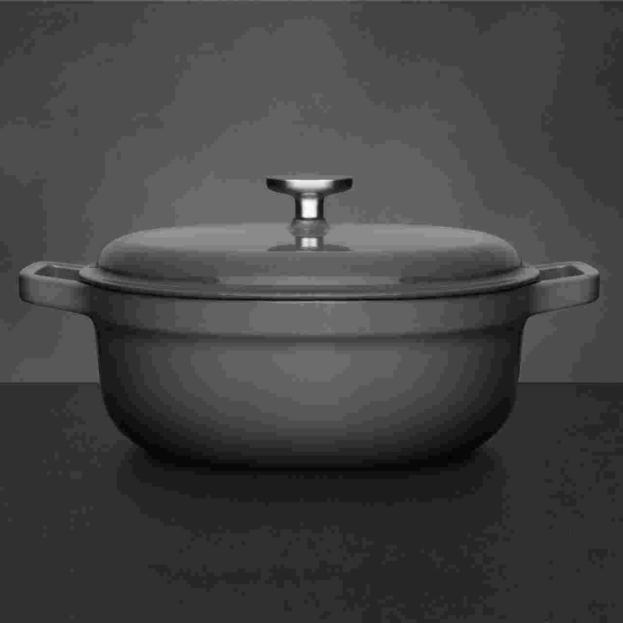 - Изделия из литого алюминия более прочные, в них тушат и жарят еду. Стоят недорого, быстро нагреваются. Литой алюминий выбирают для готовки на газовой плите. Недостатки — со временем темнеет и подвержен деформации.