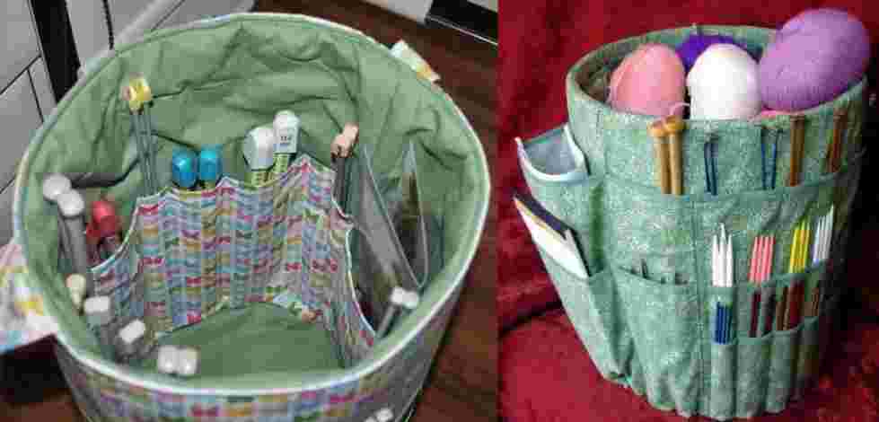 Вот и вся инструкция относительно того, как сшить для спиц и крючков органайзер-корзинку