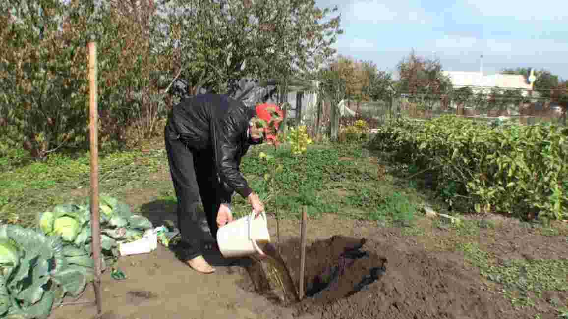 После того как саженец был расположен на своем месте, его нужно полить. Каждому дереву требуется не менее 3 ведер воды.