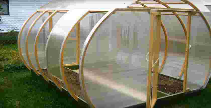 Если вы решите строить теплицу из поликарбоната своими руками, желательно выбрать конструкцию, которая позволяет использовать основное преимущество этого материала — его способность гнуться. Это два вида с изогнутыми крышами с опорами в виде дуг.