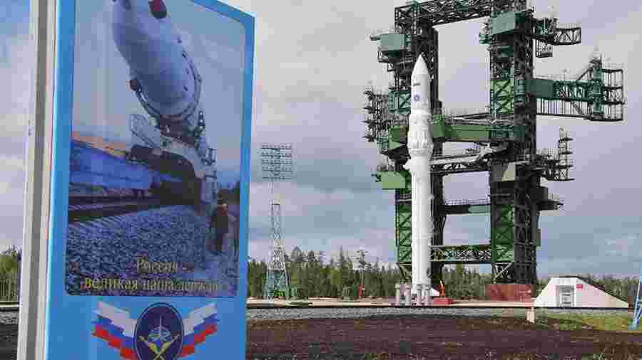 Ракета легкого класса «Ангара-1.2» во время заправки топливом на космодроме Плесецк