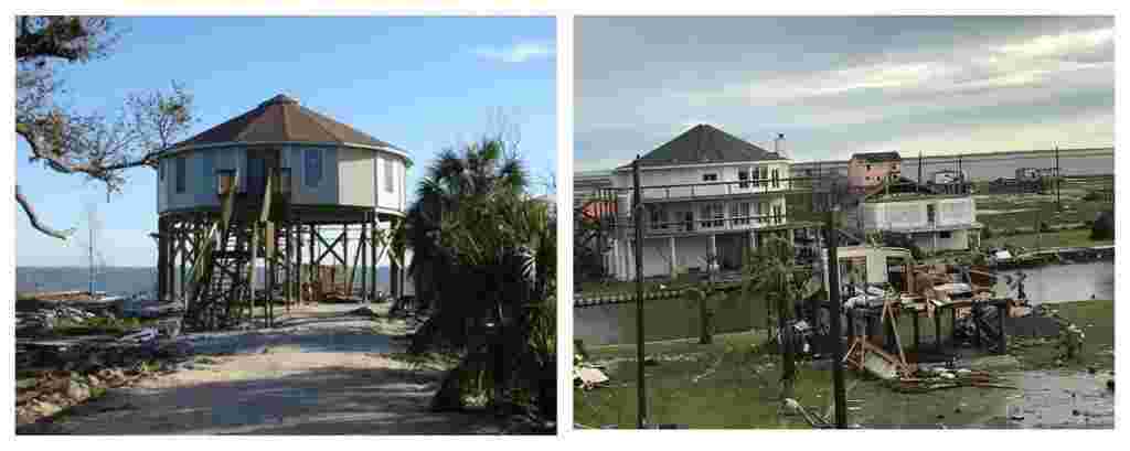 Очень важно, чтобы дома, защищенные от штормов, имели прочные стены, как доказывает этот дом, уцелевший после урагана «Катрина». Популярный выбор — железобетон — это тот материал, который при правильном использовании может противостоять разрушительным сильным ветрам и летящим обломкам