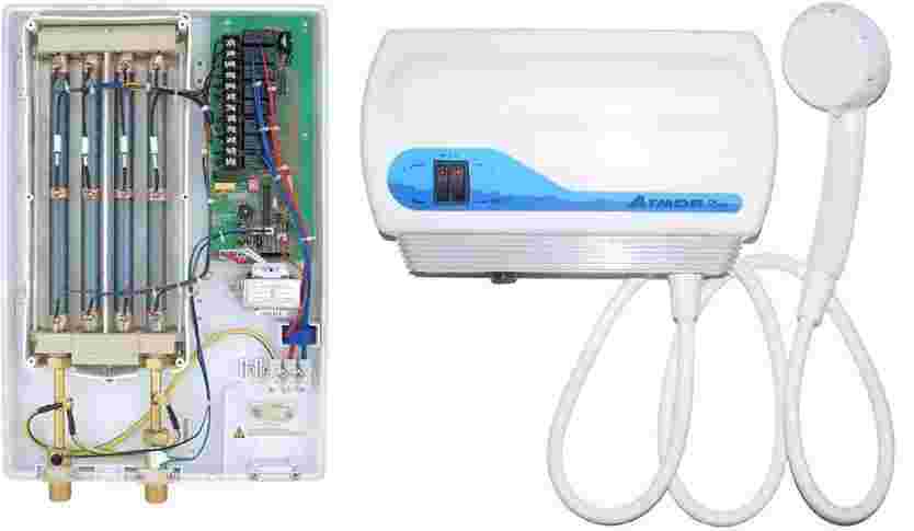 Быстрый нагрев воды обеспечивается довольно высокой потребляемой мощностью. Она может доходить до 36 кВт, но чаще встречаются модели с мощностью от 3 до 5 кВт. Модели с мощностью до 5 кВт используют в любых квартирах, приборы большей мощности целесообразно использовать только в квартирах, оборудованных электроплитами.