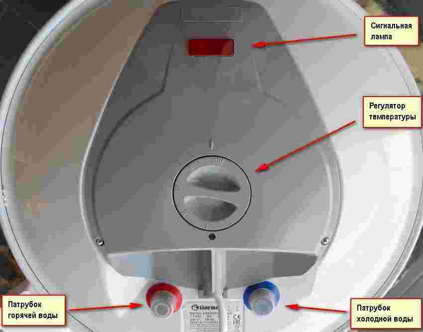 - механическое управление. Самый простой, дешевый и практичный вариант. Степень нагрева воды выставляется поворотным рычагом, который находится на днище бойлера. На самом бойлере располагается небольшое окошко со стрелкой, с помощью которого можно контролировать текущую температуру воды в баке. Все предельно просто – ломаться тут практически нечему. Минус заключается в том, что точно настроить температуру воды сложно, как, в принципе, и определить текущую степень нагрева;