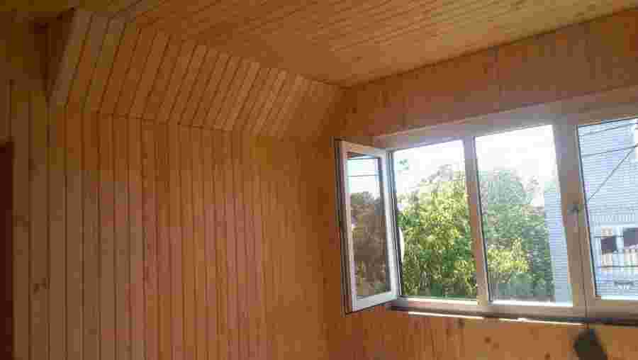 На фото обшивка потолка вагонкой