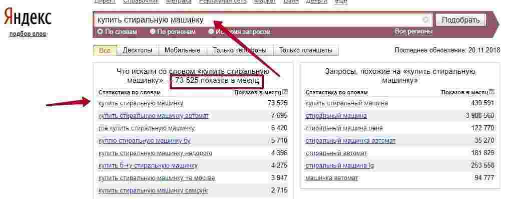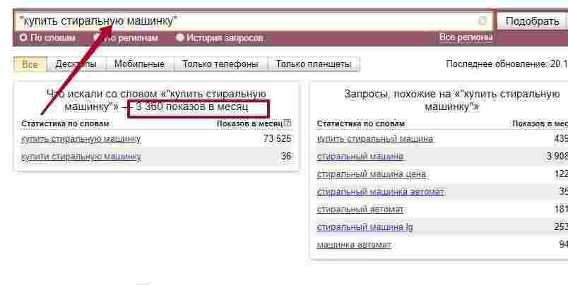 Цифра вполне впечатлительная – аж 73 525 показов! Но в действительности, эта цифра не имеет никакой связи с тем, сколько вы можете продать стиральных машинок.