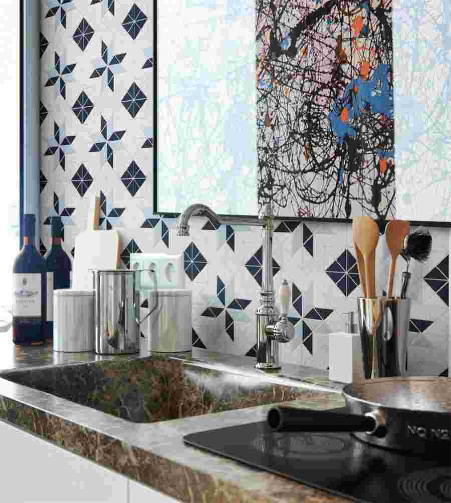 Дизайн плитки на фартук может кардинально отличаться от общей минималистичной стилистики кухни: