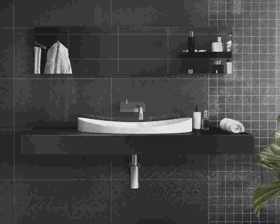 Для многих черная керамика может показаться очень тяжеловесной для интерьера. Но дизайнеры в этом сезоне предлагают много проектов, в которых она интересно обыгрывается. Варианты под черный мрамор используют для отделки душа.
