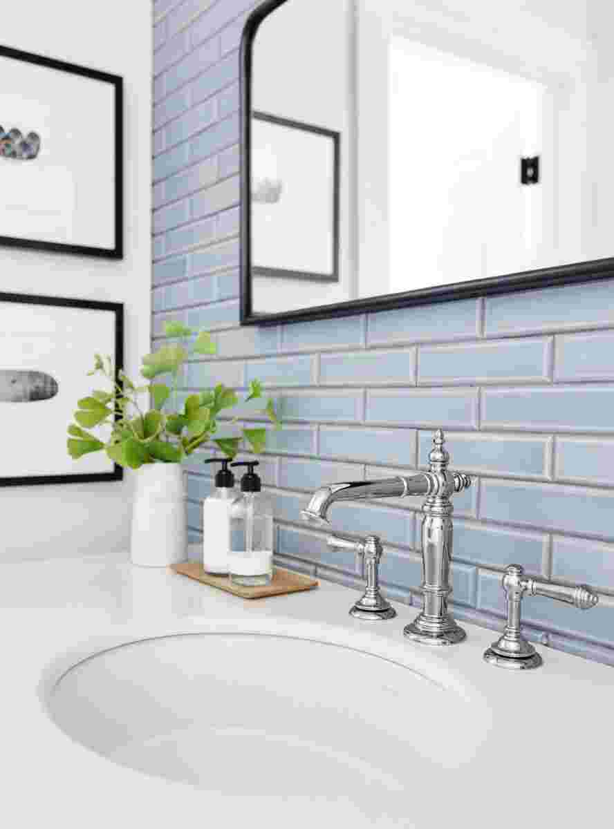 С образцами яркой палитры ситуация обратная. Их разбавляют нейтральными оттенками. Используются они для зонирования площади: раковины, кухонного фартука, туалета.