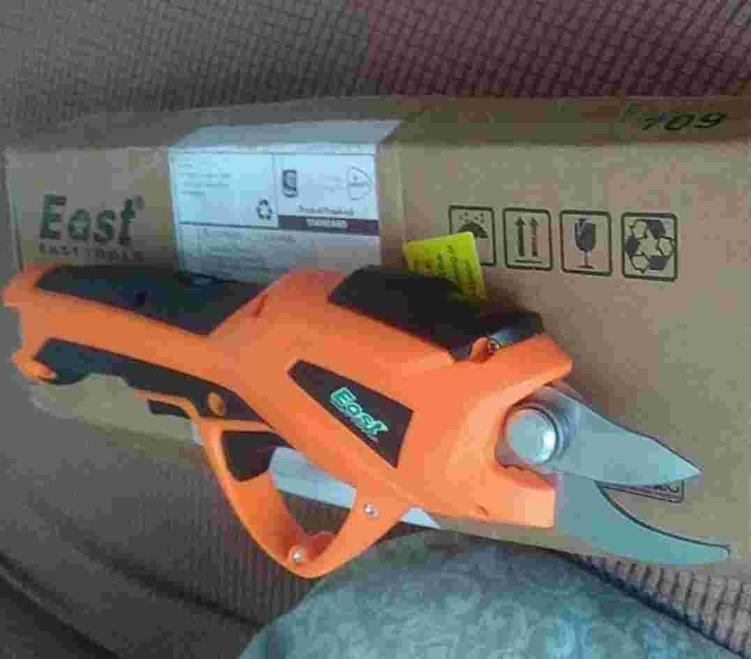 Аккумуляторный секатор может резать мягкую древесину до 14 мм в диаметре, и твердую — до 9 мм. Посылка включает в себя сам секатор, инструкцию к применению и зарядное устройство.