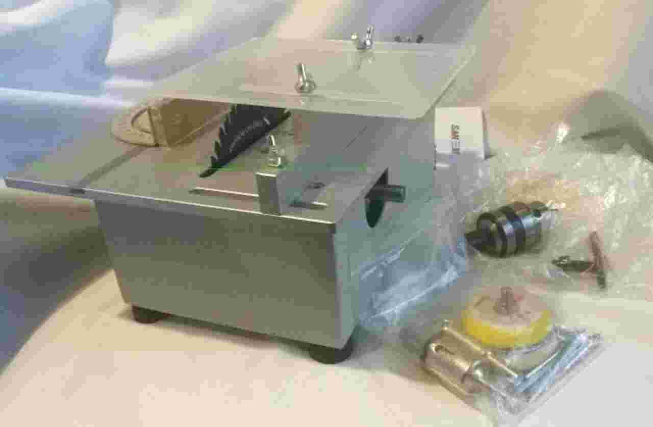 В комплект входят сама настольная циркулярная пила, диск диаметром 110 мм, патрон сверлильный В12, шлифовальный диск и 3 наждачки к нему. На мой взгляд, весьма полезный инструмент, который можно разместить у себя на даче.