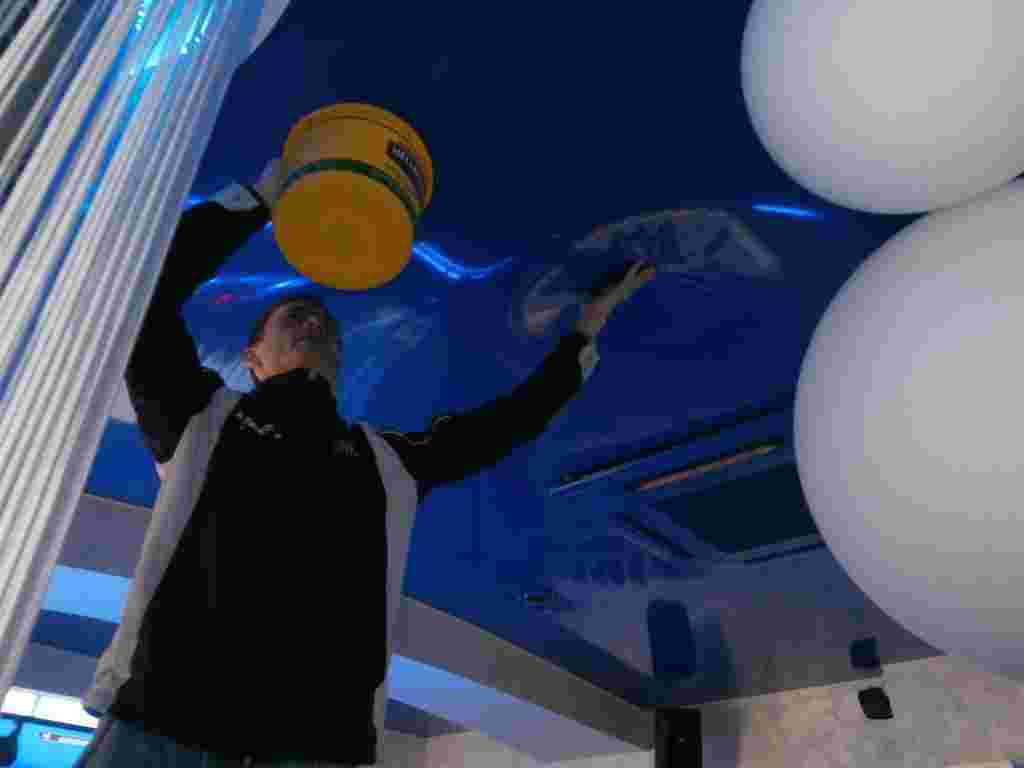 Шаг третий. Слить воду с залитого натяжного потолка. Для этого нужно вызвать бригаду мастеров. Именно специалисты по натяжным потолкам знают, как убрать воду с натяжного потолка. Они не только быстро и эффективно сольют воду, но и почистят ПВХ и высушат стены. Набирайте номер специалистов, а тем временем подоприте провисший пузырь чем-то неострым. Если провисший потолок упирается в острые края мебели, накройте края чем-то мягким. Это сохранит ваш потолок ПВХ от порыва, пока бригада не прибудет на место.