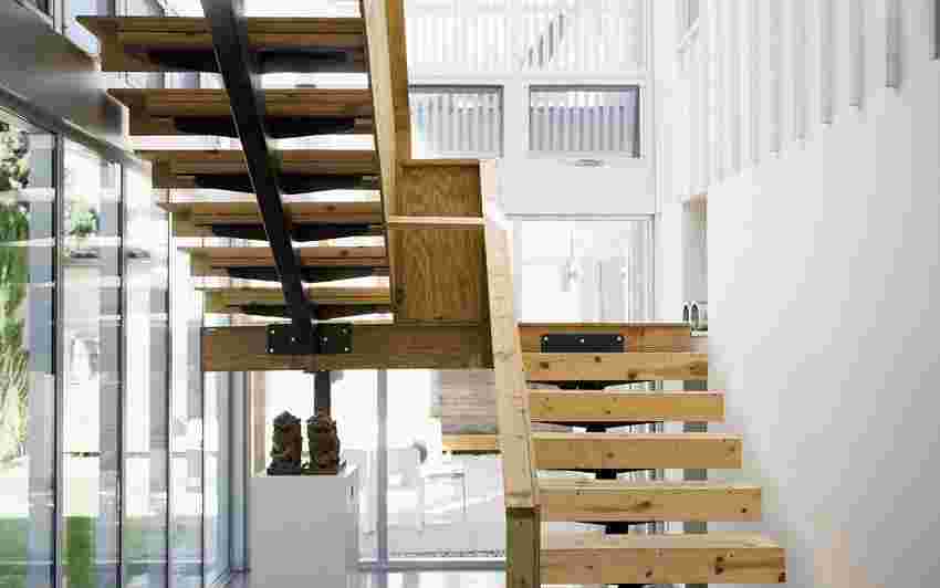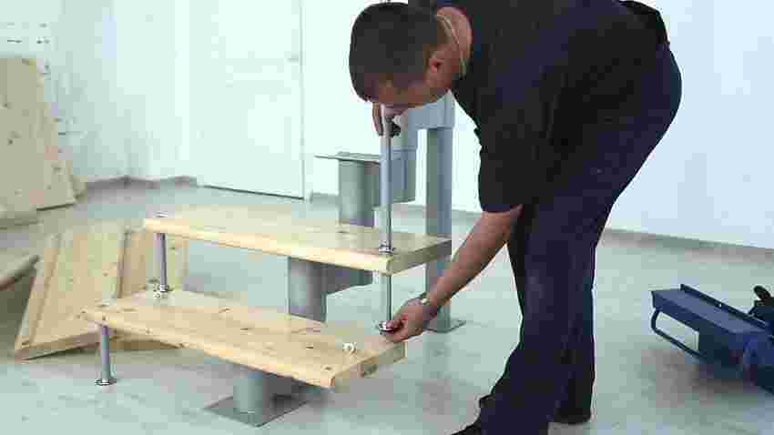 — Сооружения на тетивах. Так называют специальные наклонные балки, на которых и крепятся остальные элементы лестницы. С помощью отдельных элементов можно установить проступи и подступенки, либо только проступи.