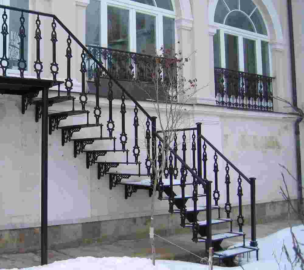 Выбирать дизайн металлической лестницы для улиц следует в зависимости от стиля экстерьера здания