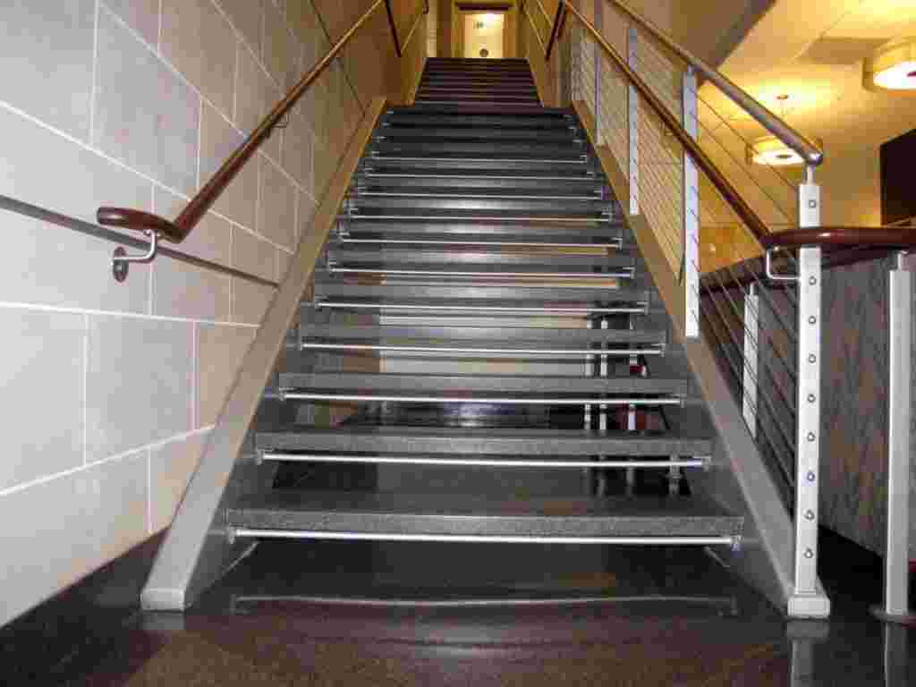 Это обеспечивает отсутствие скольжение ног на проступях, сводит к минимуму падение на лестнице.