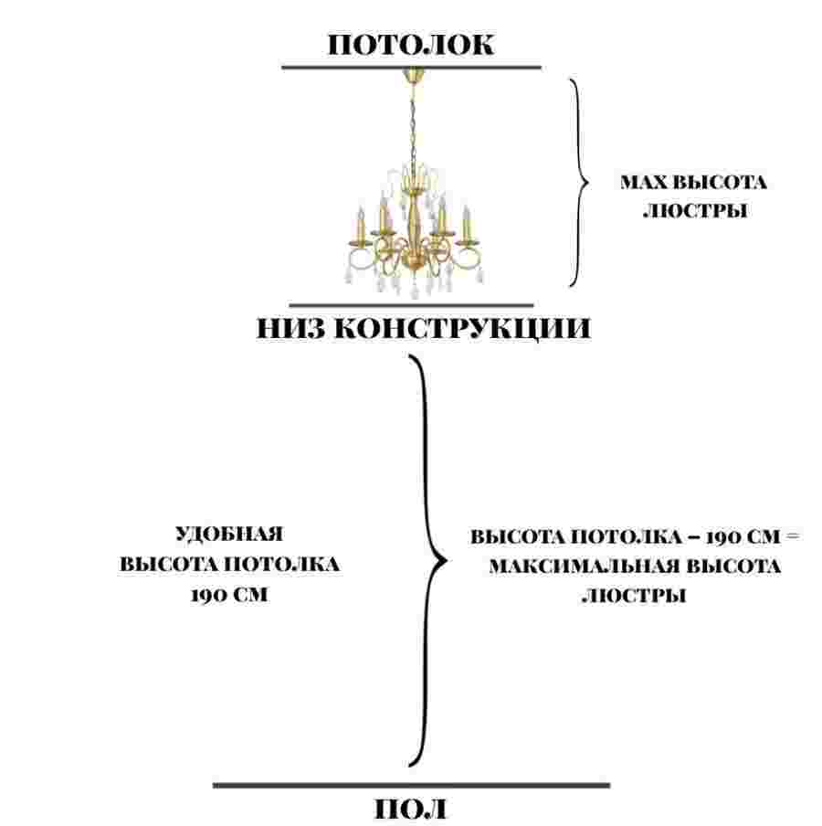 После подвешивания люстры оставшаяся высота — это расстояние от низа конструкции до пола.