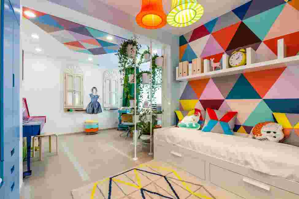 При разном оформлении, оставь схожие элементы. Например, светильники в детской и взрослой зонах могут быть разной конфигурации, но из одного материала. А текстиль подушек и портьер перекликается между собой.