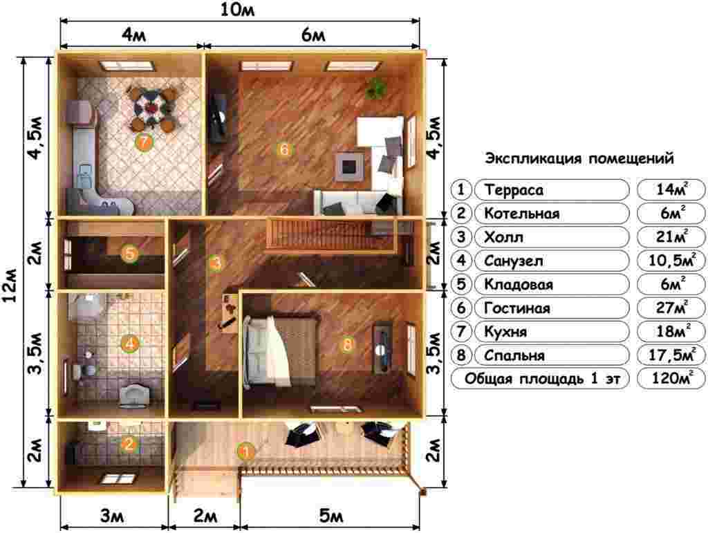 - От 10 до 15 квадратных метров отдайте террасе, а от 10 до 20 квадратных метров – коридорам, лестницам и кладовкам.