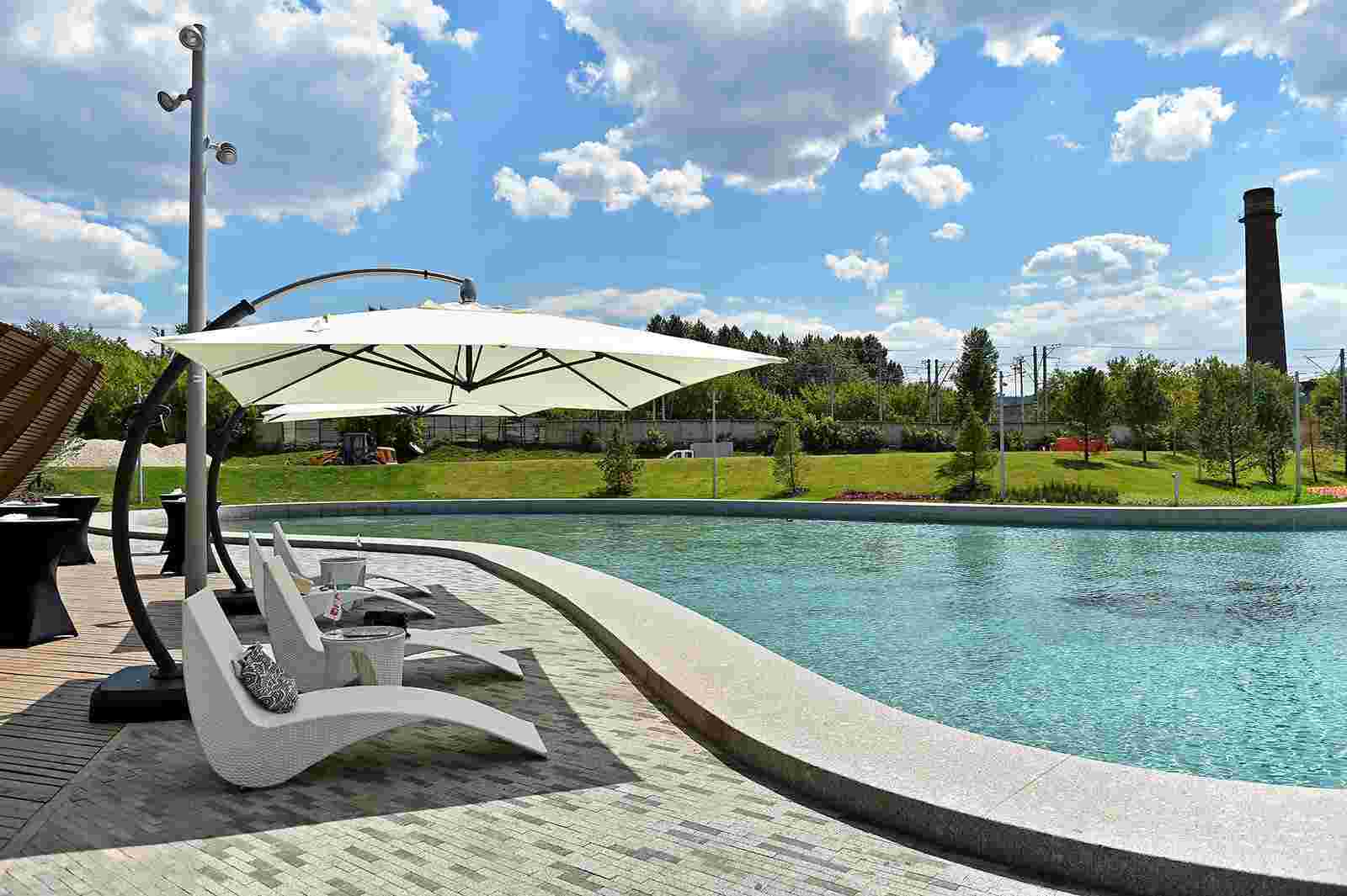 Он расположен в бетонной чаше, поэтому нет контакта между грунтом и водой. Эффект голубой лагуны стал возможен благодаря уникальной многоступенчатой системе очистки из пяти линий.