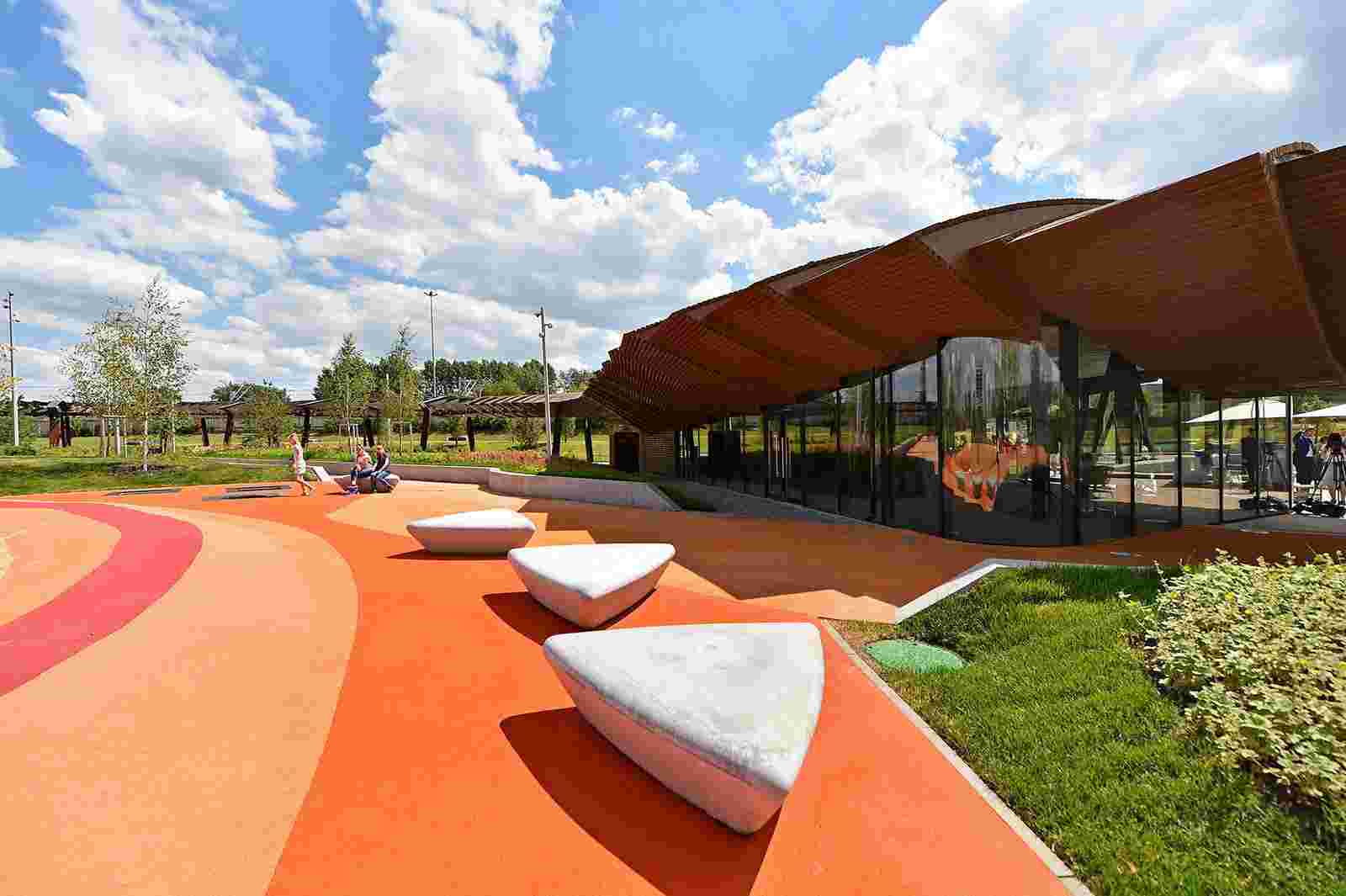 Автор проекта – известный голландско-американский дизайнер и урбанист Джерри Ван Эйк. Одной из главных достопримечательностей парка стала пергола. Это не беседка и не павильон в классическом смысле, но одновременно и крытая прогулочная зона длиной 1,3 км, и смотровая площадка, и объект паблик-арта.