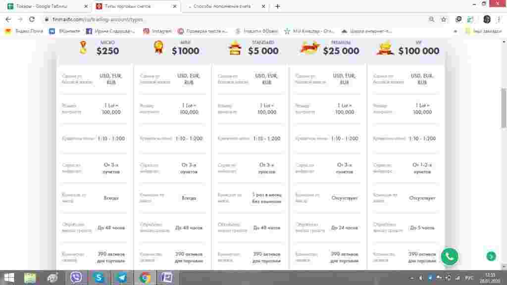 - Micro – пополнение на 250 долларов, спред от 3-х пунктов, комиссия за вывод средств, 1 вебинар в неделю с аналитиком, бонус до 30-ти процентов;